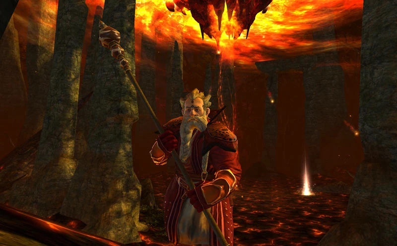 Ein Feuerbeschwörer vor einem Riss des Feuers |